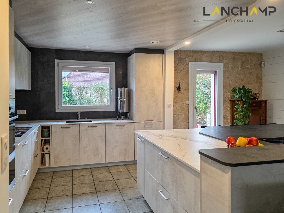 Ces 116 m² habitables comprennent une vaste pièce de vie composée d’un cuisine ouverte sur le salon et d'un séjour dans la véranda. Sur le demi-niveau supérieur il y a 3 chambres dont une avec dressing, une salle de bain, un WC. Sur le demi-niveau inférieur se trouve un sous-sol de 44 m² accueillant un grand garage un atelier et une buanderie.