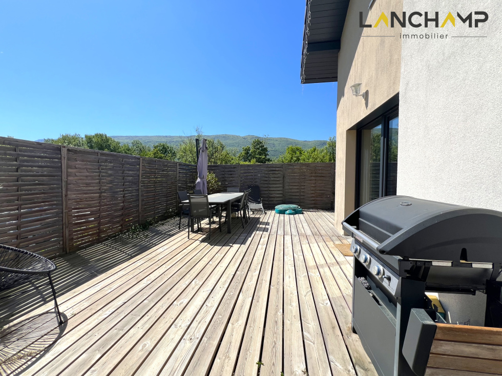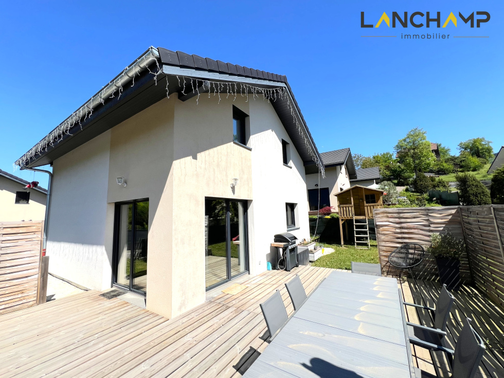 Au centre de Seyssel 74, à proximité immédiate de toutes les commodités, de la gare SNCF et des transports scolaires, nous vous proposons cette jolie maison individuelle d'environ 90m² habitables construite en 2020. Elle se compose d'une entrée avec placard, une cuisine meublée ouverte sur le séjour et un WC/buanderie au rez-de-chaussée, puis à l'étage d'une suite parentale avec dressing et salle de bains/WC, 2 chambres et une salle de douche/WC. Le bien bénéficie également d"un garage, de 3 places de stationnements extérieurs, d'une grande terrasse et d'un petit jardin. Cette maison saura vous séduire par sa situation géographique proche du centre-ville.